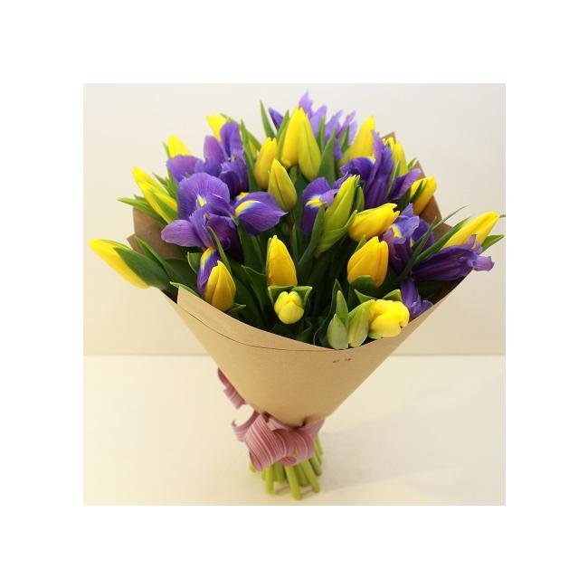 Описание Яркое и классическое сочетание желтых и сиреневых цветов, как лучики среди темного неба. *
