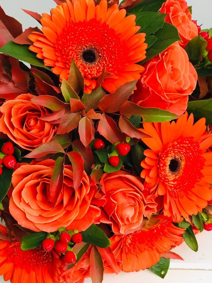 Описание Яркий, сочный букет с герберой и розой. Весенние тона добавляют очарования. Это букет восторг, феерия! От него невозможно отвезти глаз. Обязательно порадует свою получательницу. Букет подойдет в подарок и мужчине. Конечно осенью он особенно актуален.