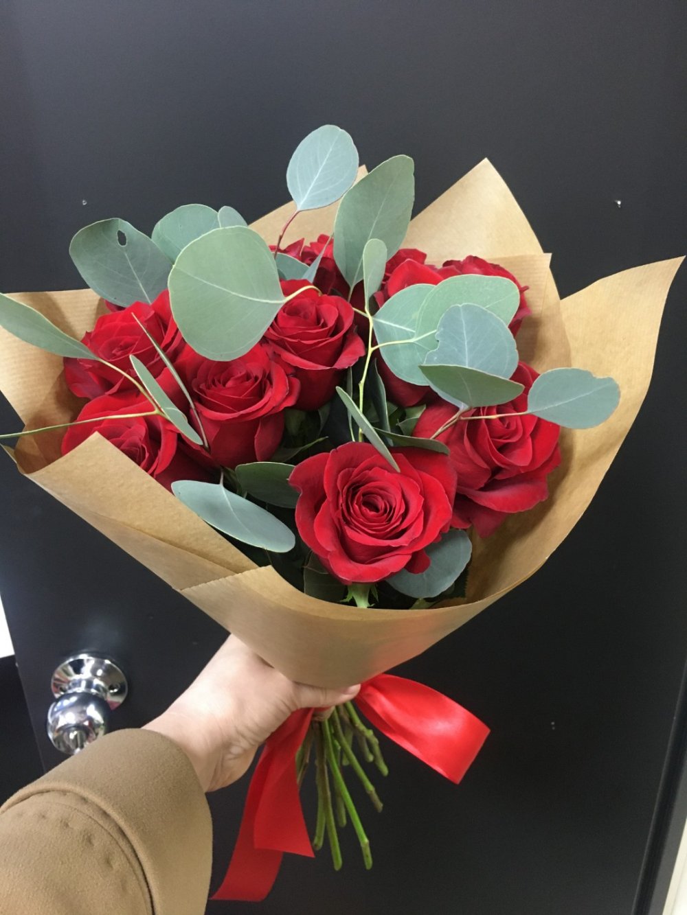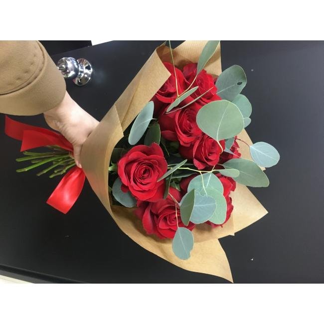 Описание Очень изящный небольшой букет. В букете представлены розы и эвкалипт такого сорта, что когда несешь букет, листья эвкалипта порхают над цветами как бабочки. *