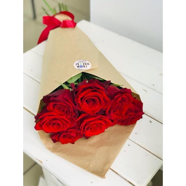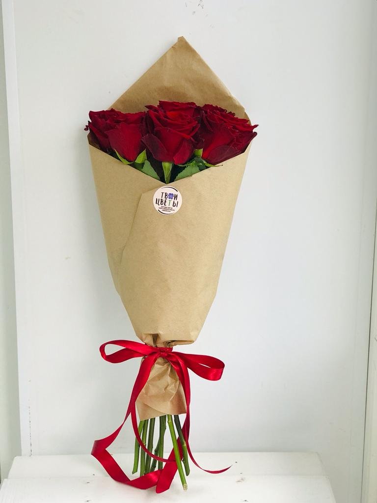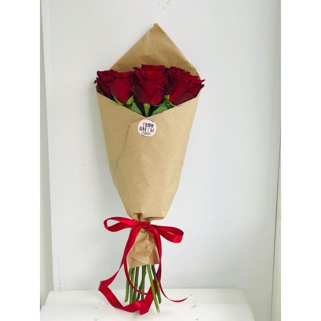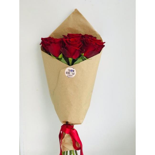Описание Бордовые розы в упаковке крафт. Стильно, благородно.
