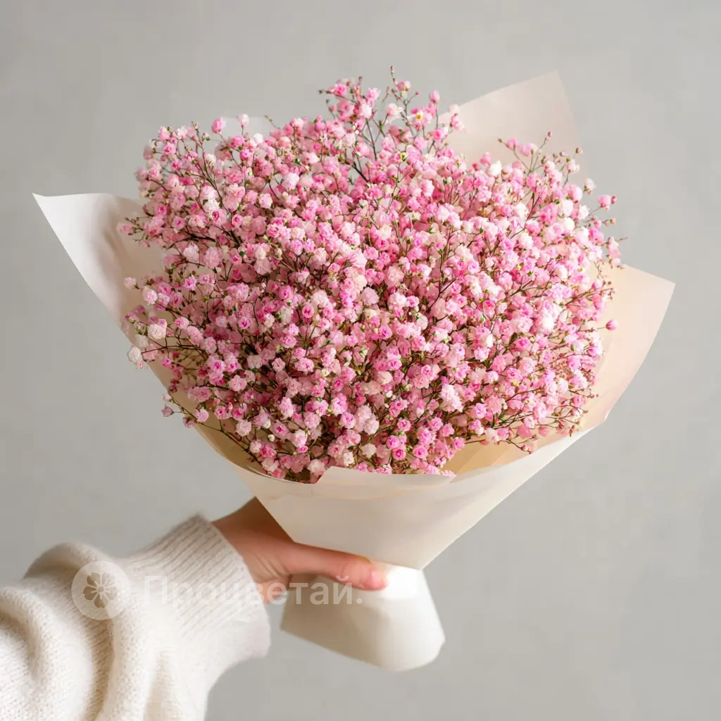 Гипсофила в этом букете будто плетёт кружевную вуаль. Изящный, воздушный и очень женственный. Подойдёт для подарка любимой, маме или коллеге.