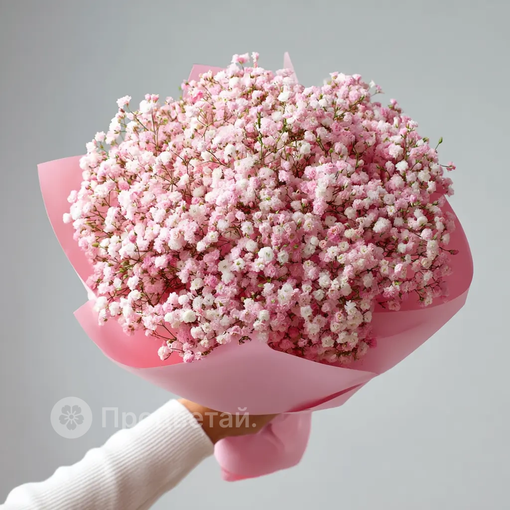 Композиция, вдохновлённая фантазией и лёгкостью. Букет из гипсофилы будто парит в воздухе — отличный вариант для сказочного настроения или подарка в стиле “wow-эффекта”.