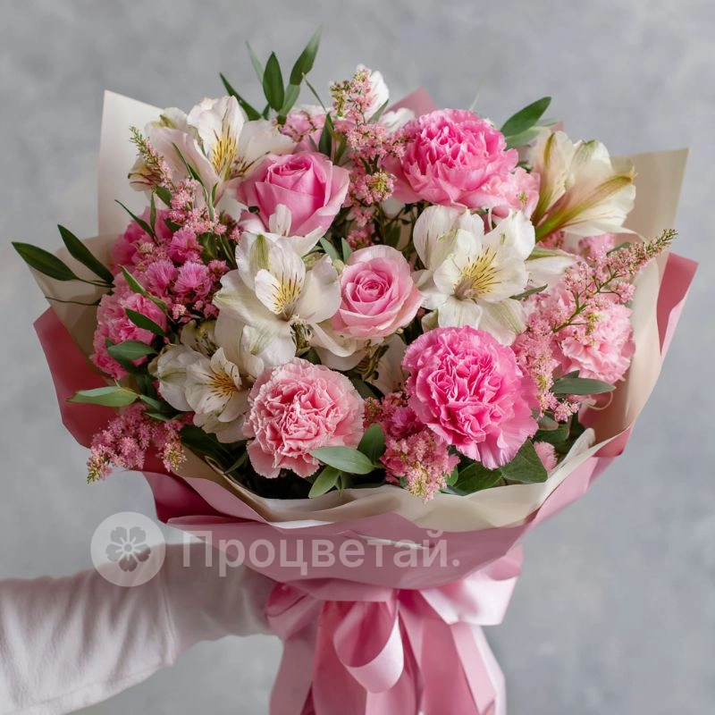 ГлавнаяКаталогБукетыБукет с гвоздиками «Розовый каприз»