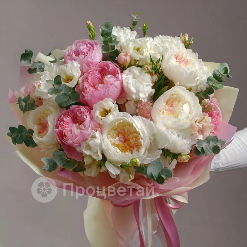 Букет с пионами «Перламутровая вуаль»