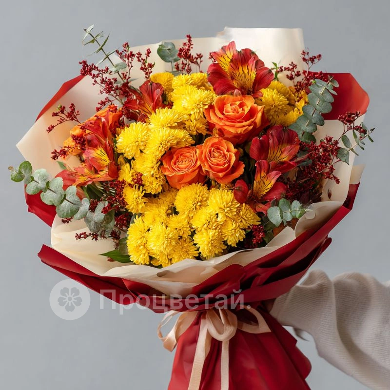 Букет с хризантемами «Листопад эмоций»