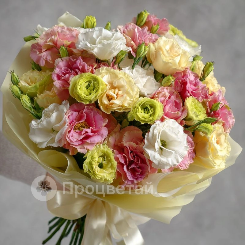 Цветочная музыка, в которой каждый лепесток звучит по-особенному. Богатая текстура, плавные переходы цвета — этот букет с эустомами подойдёт для особых моментов и любимых людей.