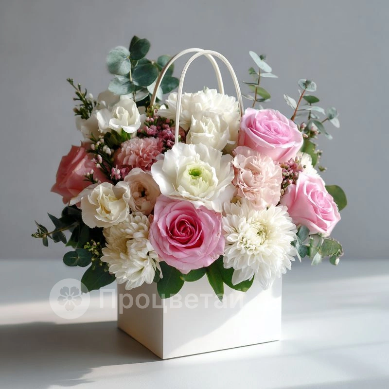 ГлавнаяКаталогКомпозицииКомпозиция в сумочке «Нежность с собой»