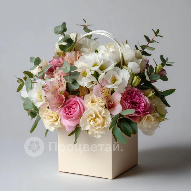 Французский шарм и нотки флористической романтики. Композиция изысканная и очаровательная — отличный вариант для утончённого подарка.
