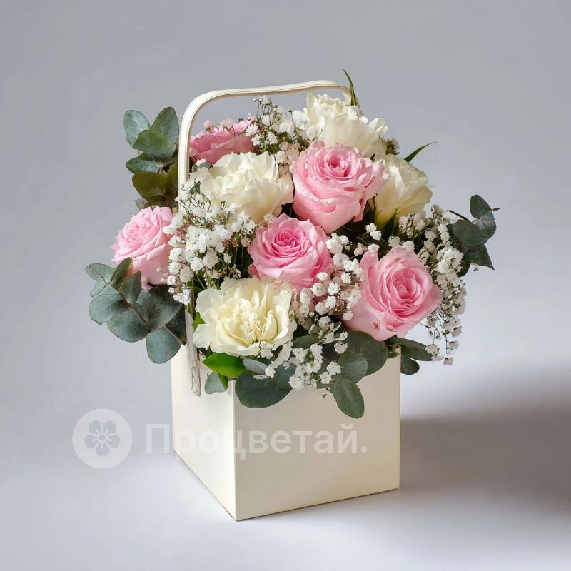 Яркая, как конфета, композиция в сумочке поднимает настроение с первого взгляда. Подойдёт для спонтанного подарка или тёплого жеста внимания.