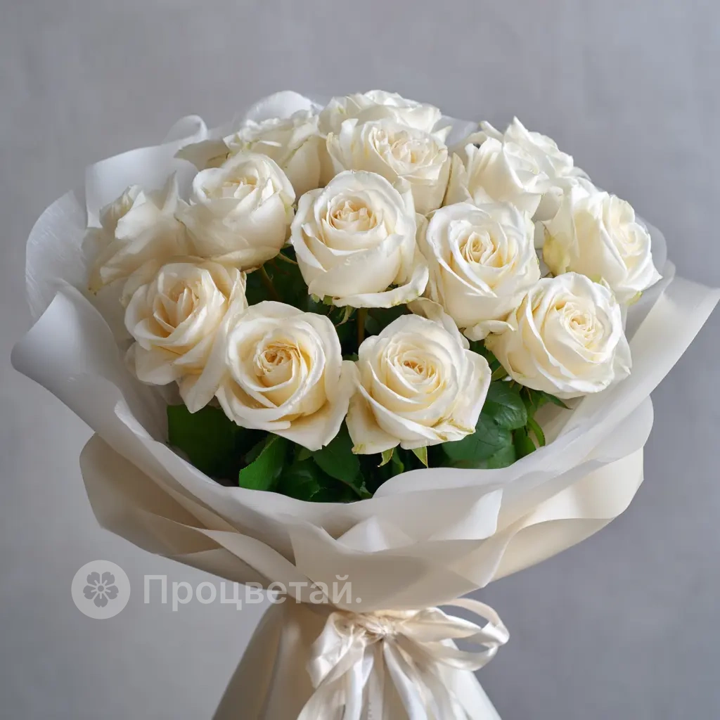 Стильный и торжественный букет из 15 белоснежных эквадорских роз высотой 50 см. Идеален для свадеб, юбилеев и других важных событий. Эквадорские розы — это крупные бутоны, насыщенный аромат и безупречная свежесть.