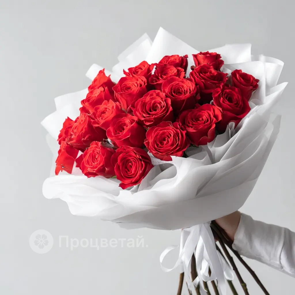 Этот букет буквально дышит страстью. Красные розы словно языки пламени символизируют влюблённость, пыл и энергию чувств. Универсальный выбор для Дня святого Валентина или годовщины.