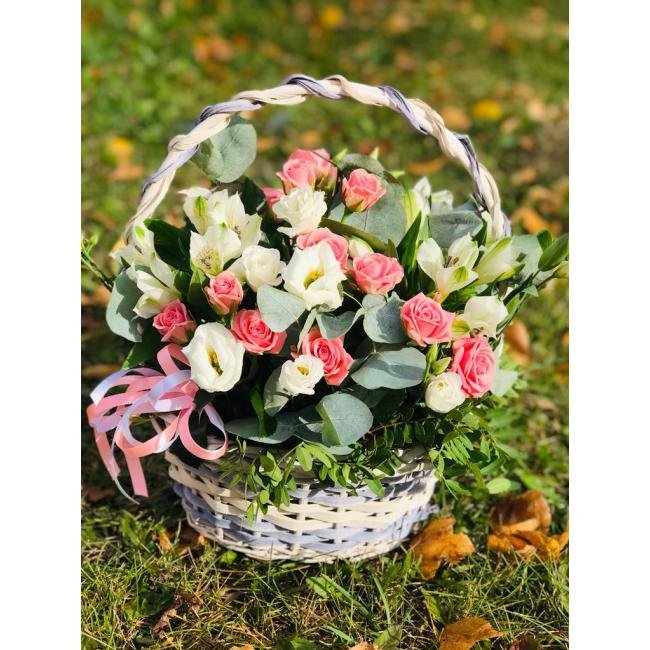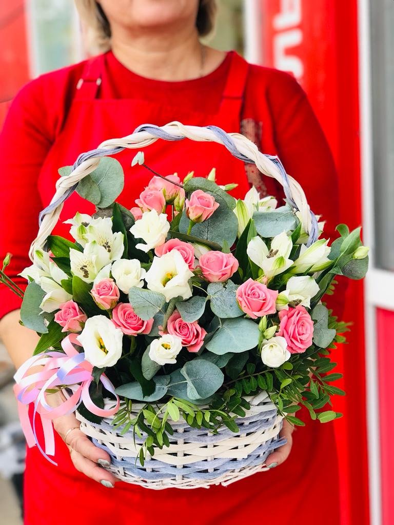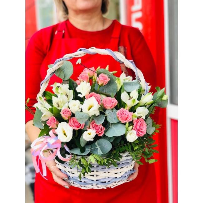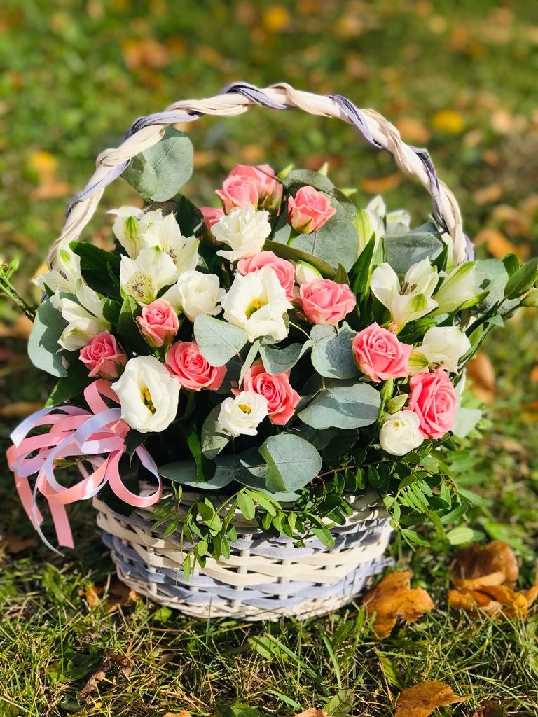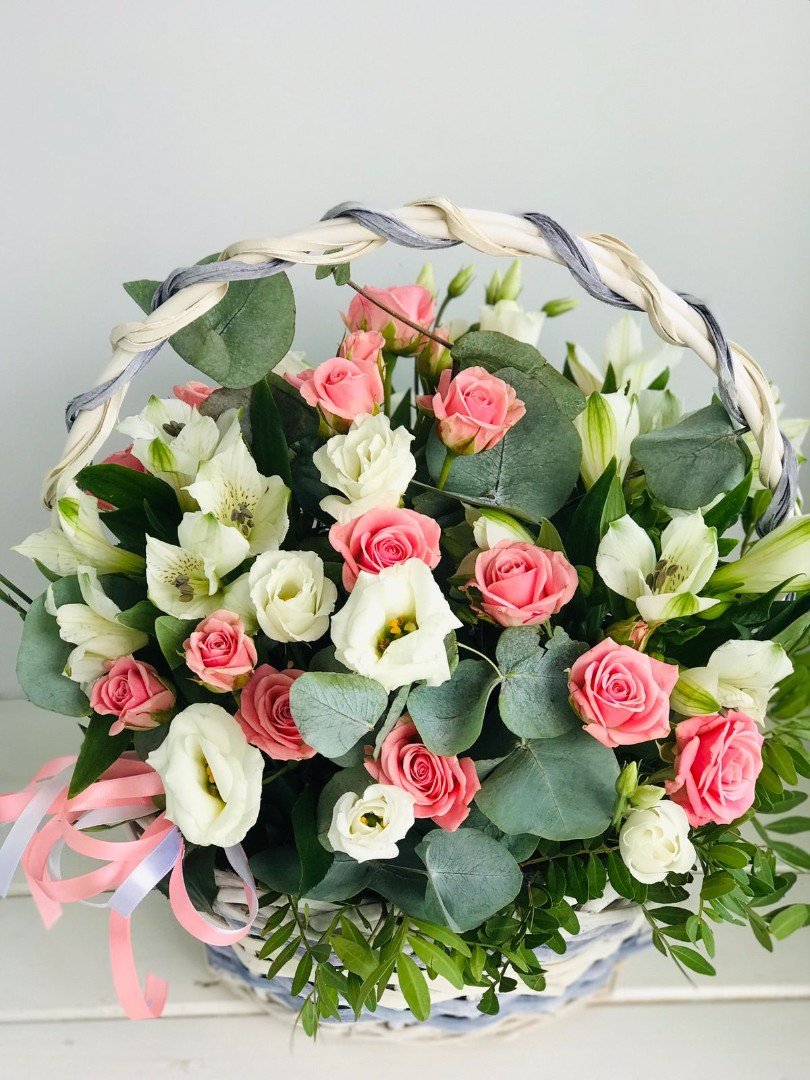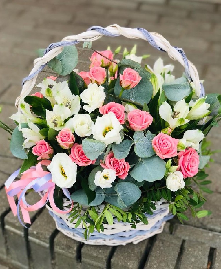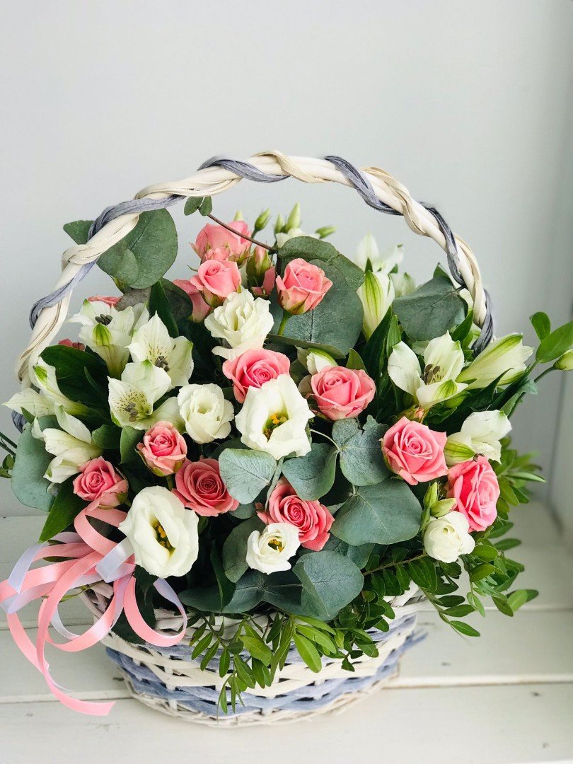 Описание Прекрасная, необычная композиция сочетает в себе и нежные цветы и сизый благородный цвет эвкалипта. Романтичное настроение на весь день. Свежий, волшебный вид композиции, порадует и любимую, и маму, и коллегу, и сестру!