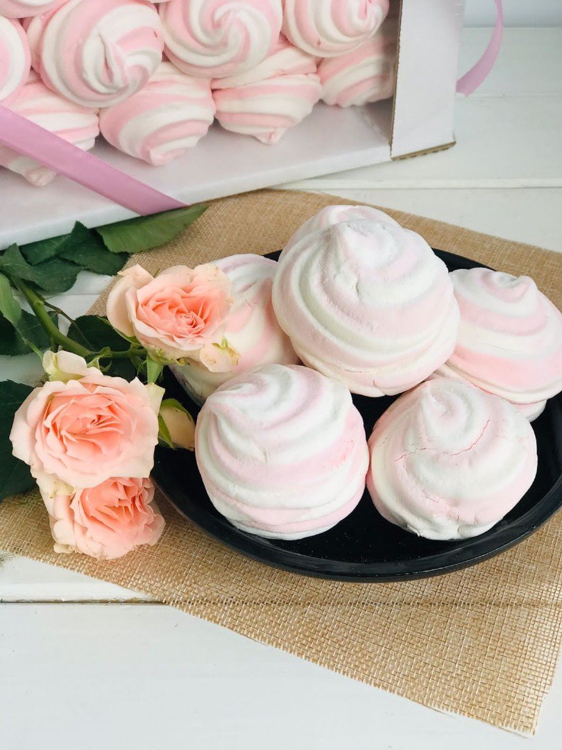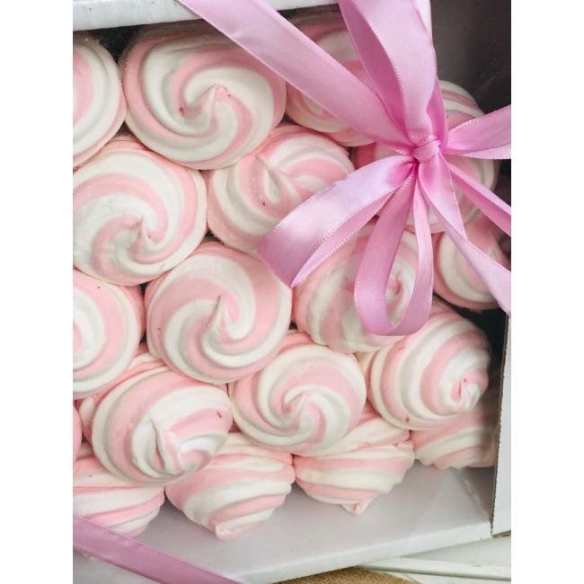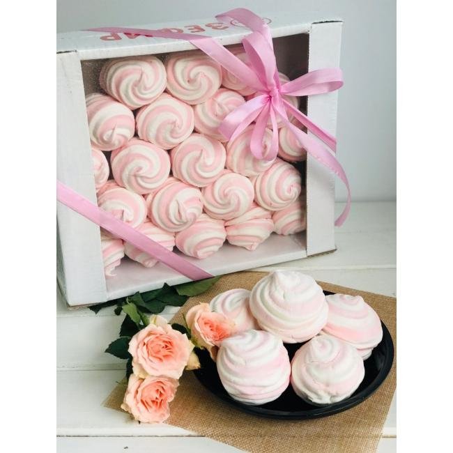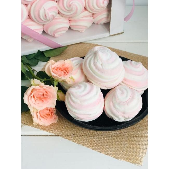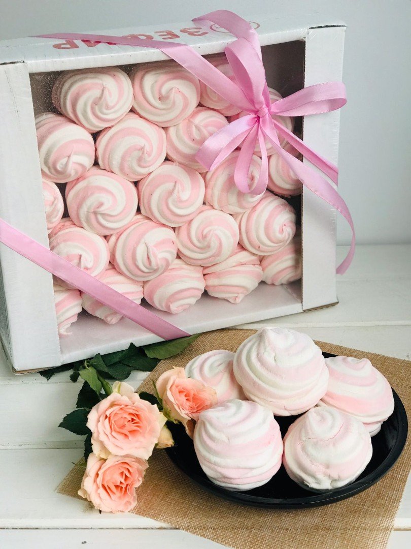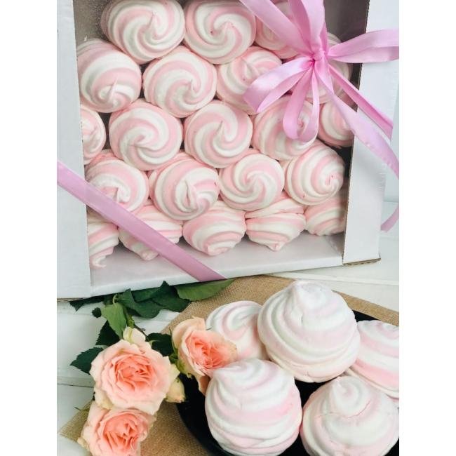 Описание Вкусный и красивый двухцветный зефир в аккуратной упаковке с лентой и бантом. Приятное дополнение к букету и основному подарку. Можно дарить просто так, для настроения). Вкус: клубнично-сливочный